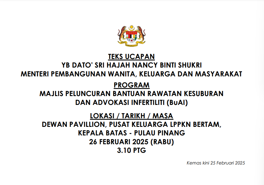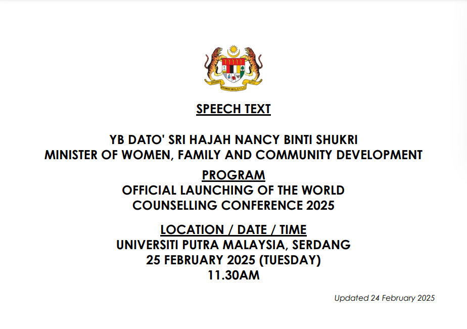 TEKS UCAPAN MENTERI / TIMBALAN MENTERI
