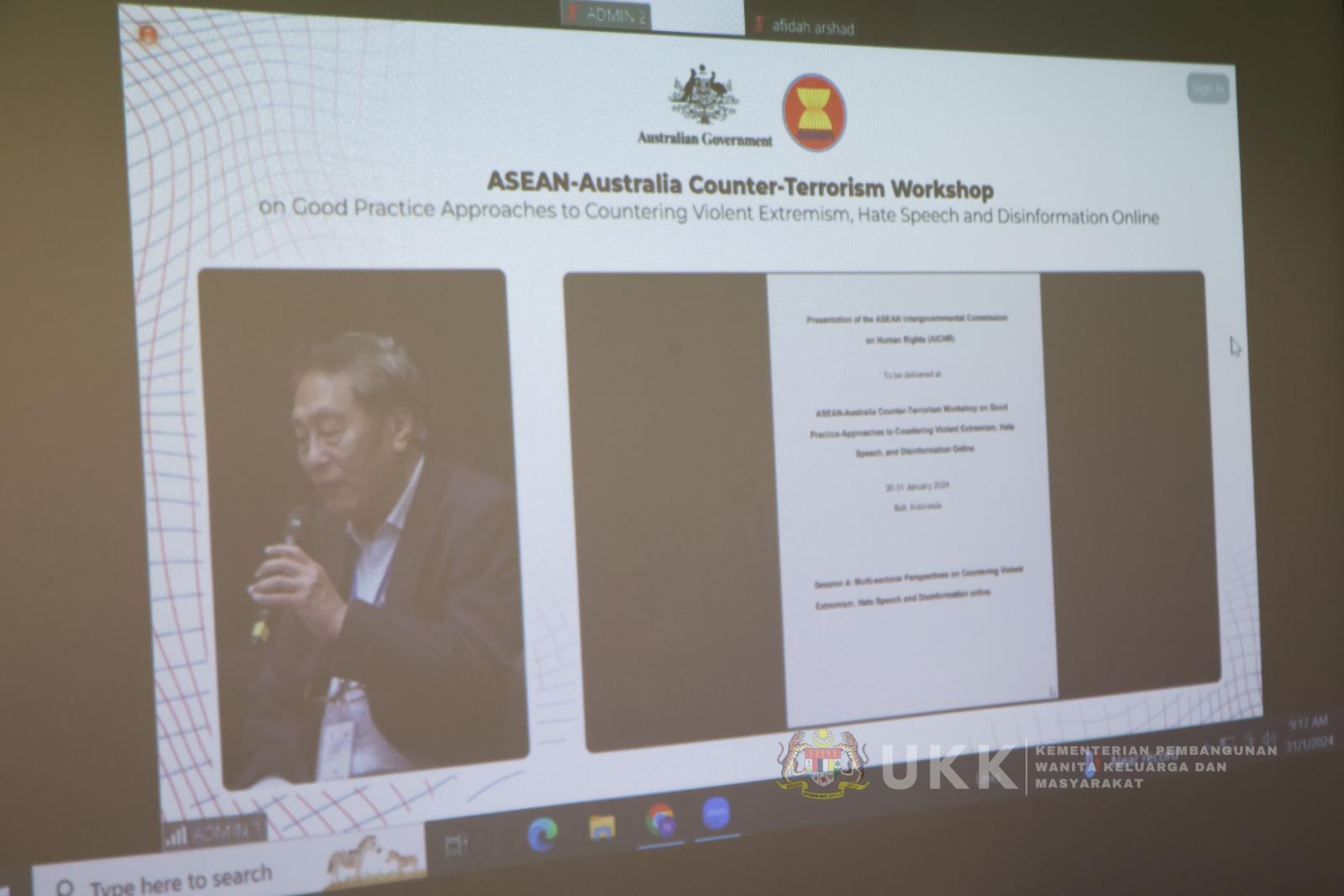 AUSTRALIA COUNTER TERRORISM WORKSHOP IN GOOD PRACTICE APPROACHING TO COUNTERING VIOLENT EXTREMISM, HATE SPEECH AND DISINFORMATION ONLINE
